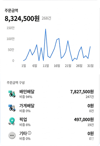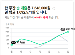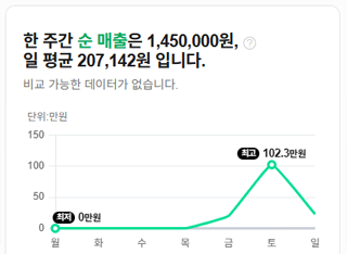 기존 매출: 1,450,000원주간 매출 527% 수직 상승매출 5배 상승 -
